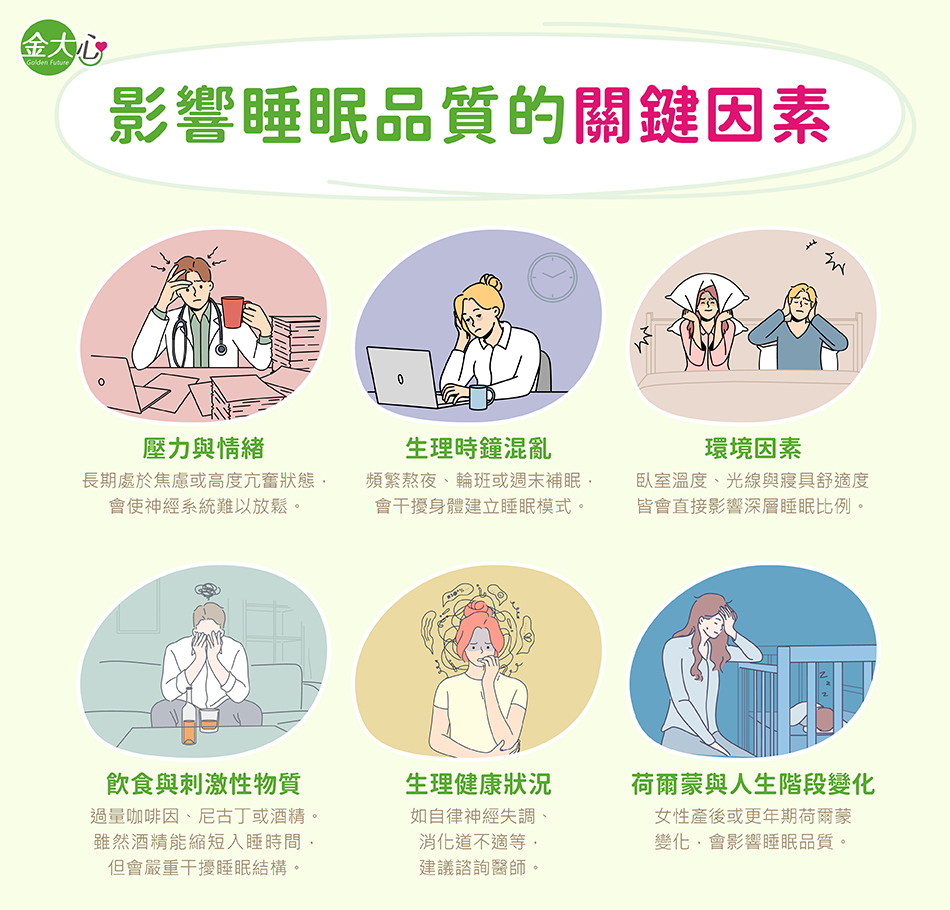 這也提醒我們,當睡眠出現問題時,不能只依賴藥物來應對,更需要回過頭來檢視日常作息與飲食內容,從生活與營養層面為睡眠品質打好基礎,已成為現代人必須面對的重要課題。