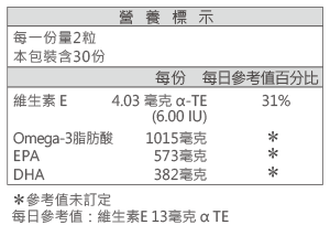 魚油(魚油、維生素E(抗氧化劑))、維生素E。