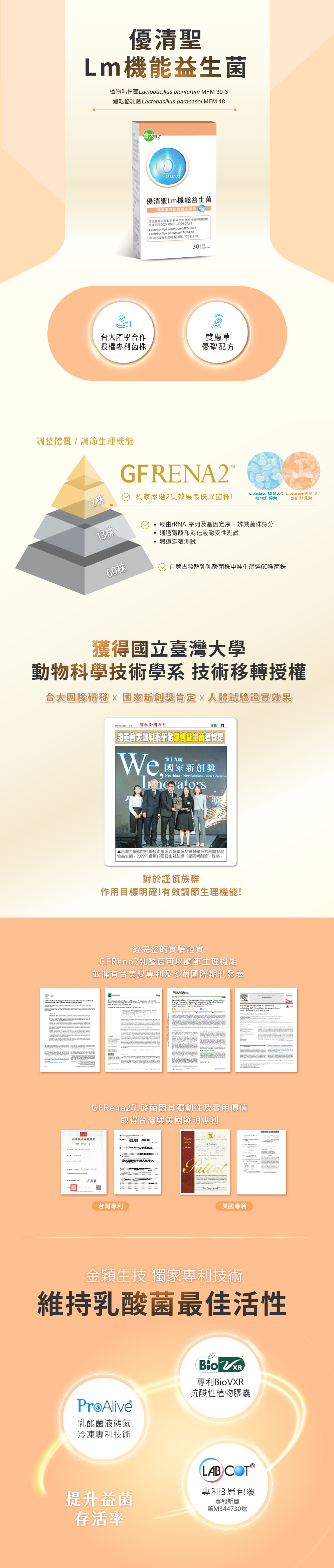 ● Lm機能益生菌獲台美雙專利認證、國家新創獎肯定
