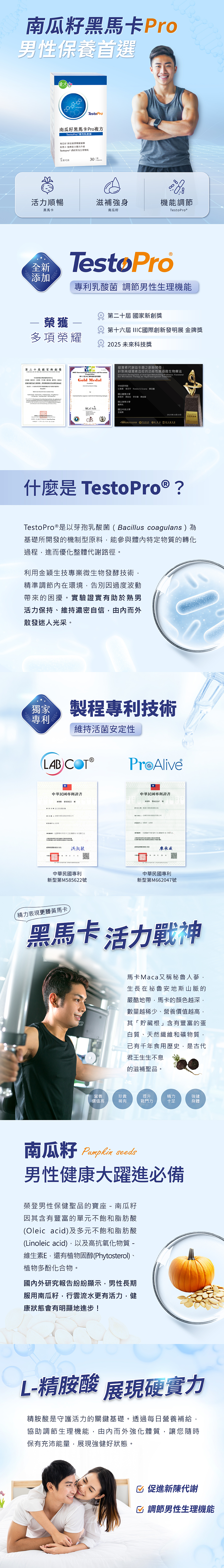 ◆ TestoPro®芽孢乳酸菌:專利菌株,調節生理機能