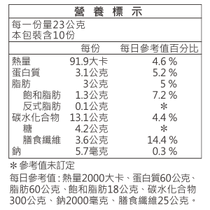 ◆無負擔-微量菊糖(菊苣纖維),熱量只有91.9大卡