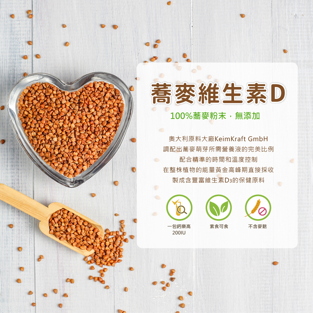 ◆ 【維生素D】嚴選蕎麥維生素D3,增進鈣吸收,維持血鈣平衡