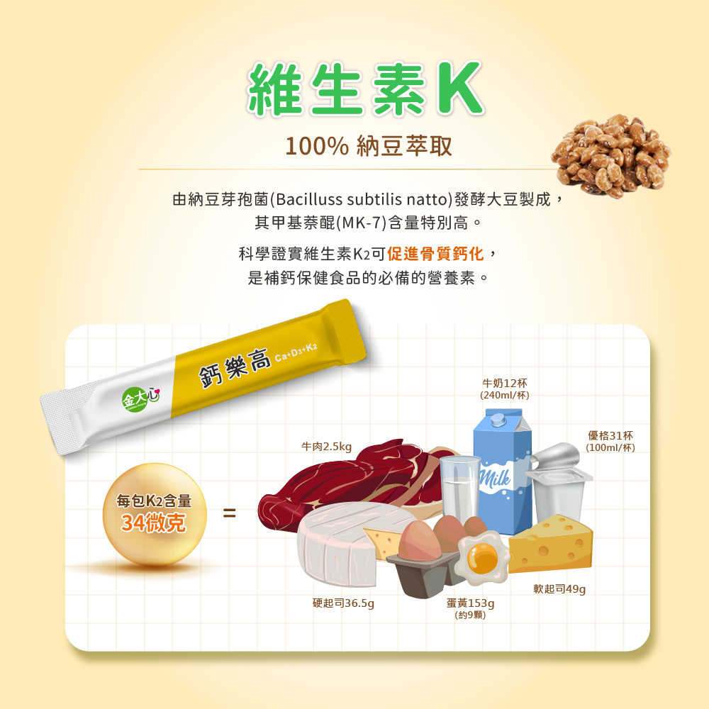 ◆ 【維生素K】促進骨質鈣化,行動穩健